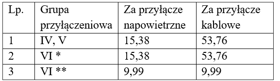 Tabela 1. Cennik stawek opłat przyłączeniowych